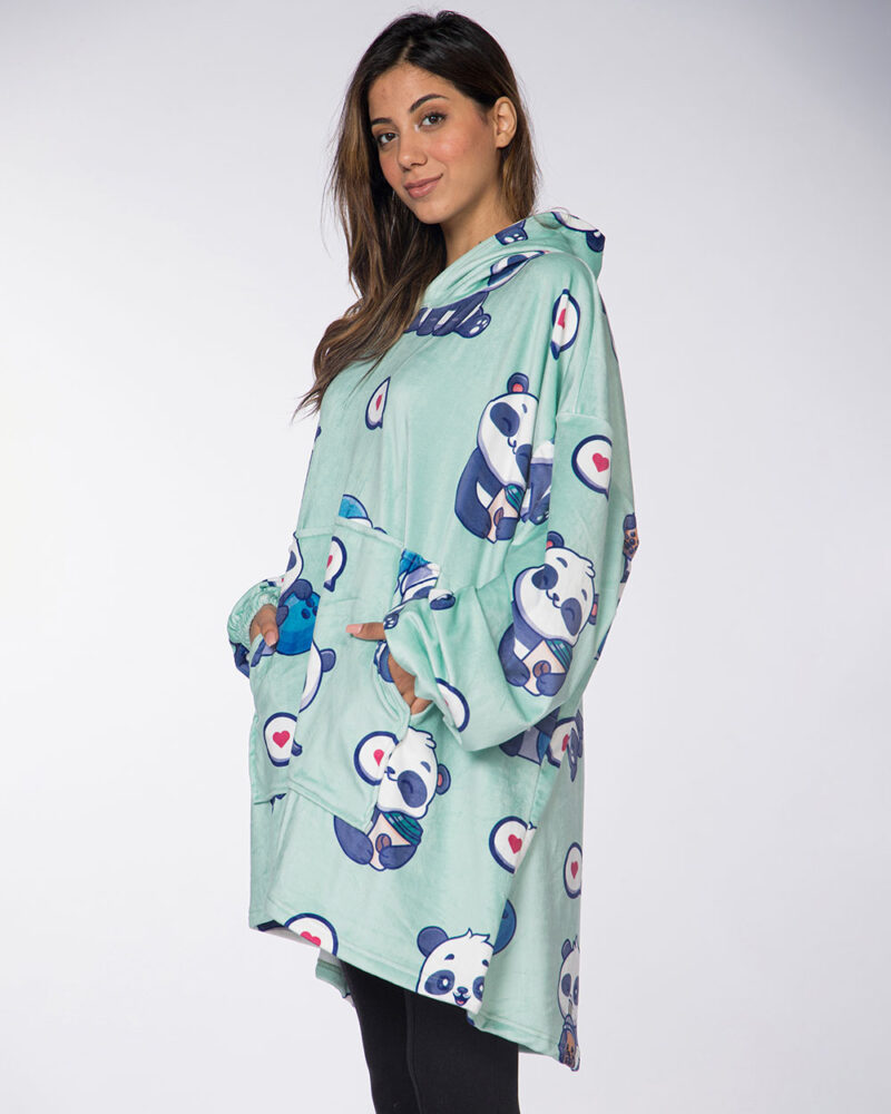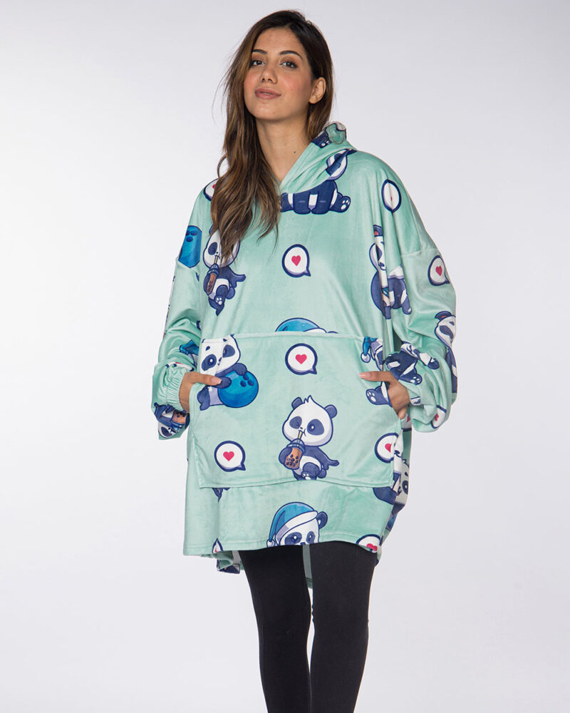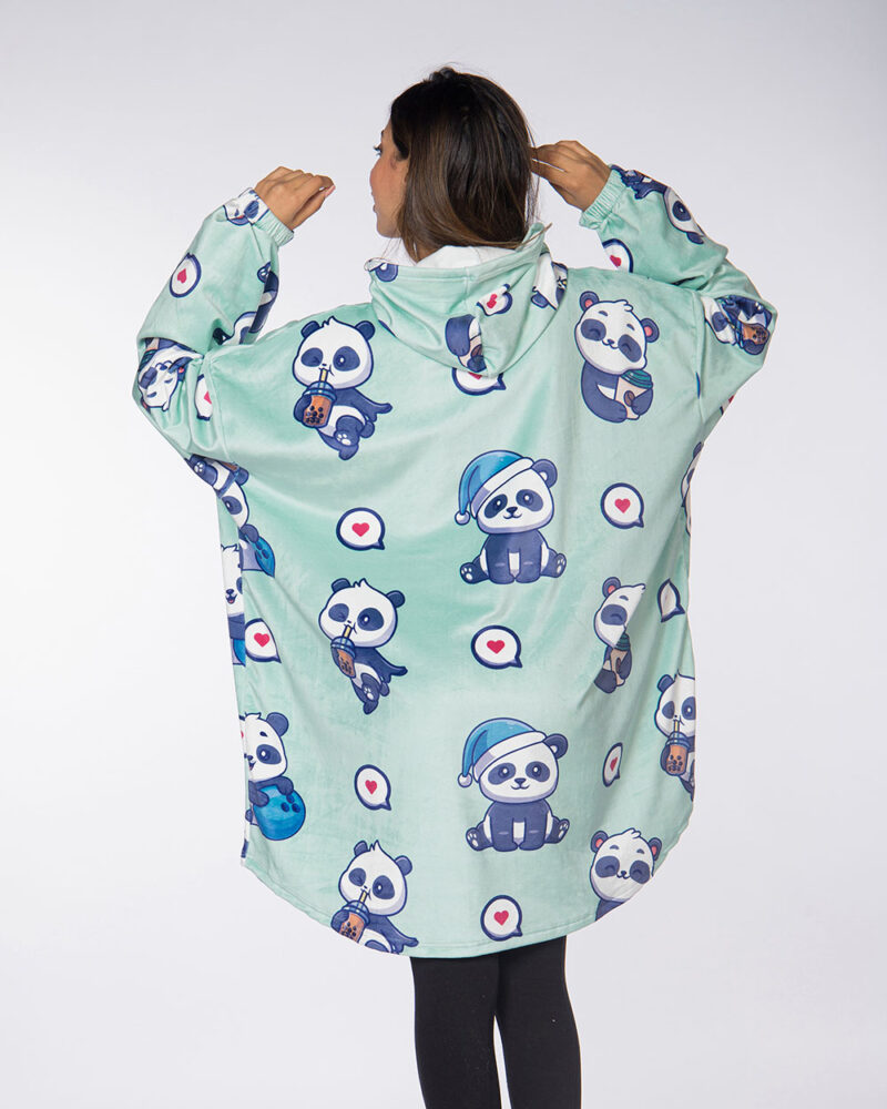 Cute Panda Mint Hoodie Blanket