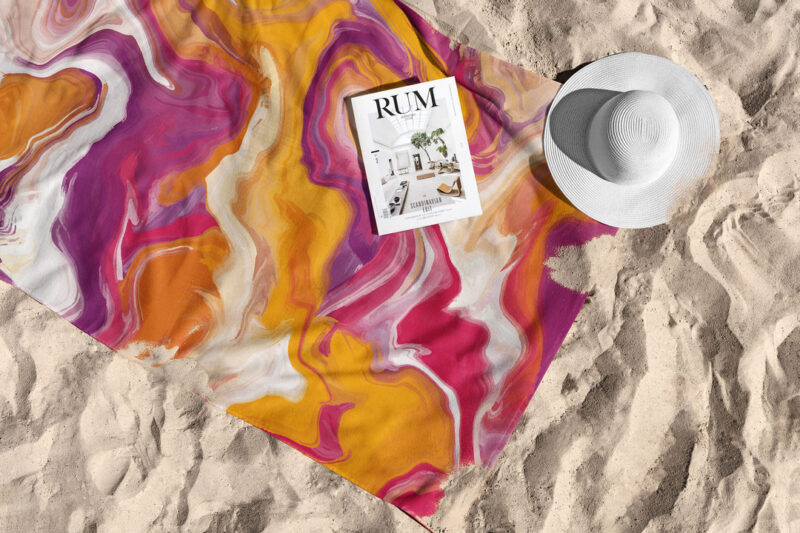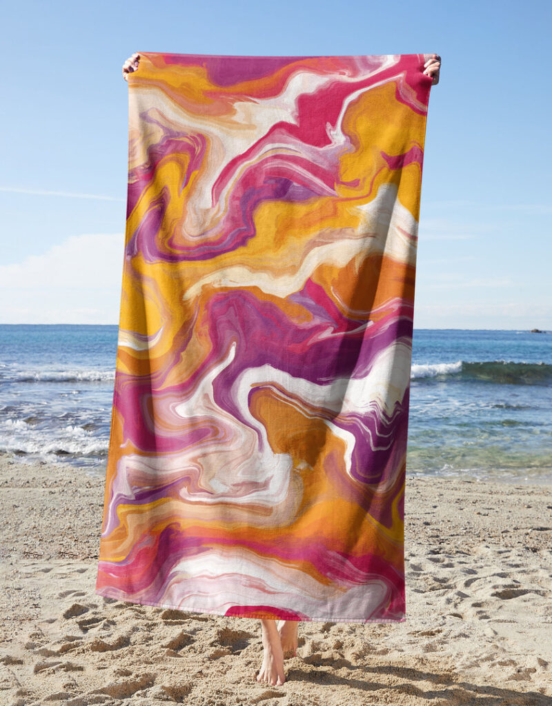 - Name: Pink And Orange Marble Waves Towel